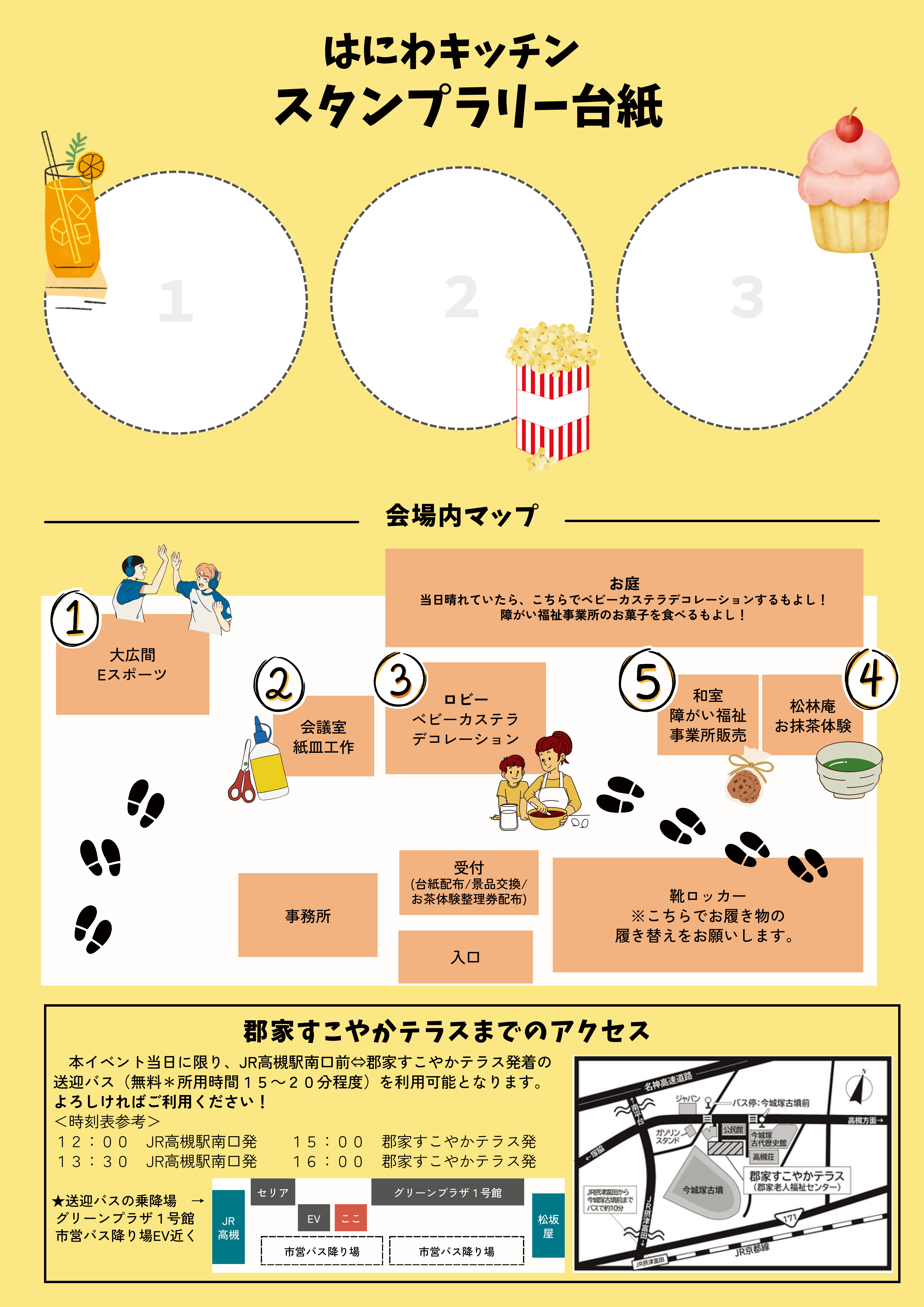 上記5か所のうち、3か所の体験をしてもらいスタンプが3つ集まると、素敵な商品がもらえます!!